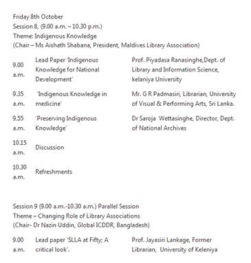The theme of the the Conference is ‘Libraries: Access to Information and Empowering People’. In this regard, Shaba will be presenting a paper on ‘Access to information: experience in Maldives’. More information about the conference is available from SLLA websitte <www.slla.org.lk>. Shaba is also scheduled to chair the session on “Indigenous Knowledge” on October 8, 2010.