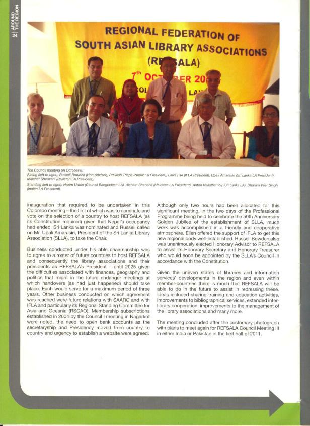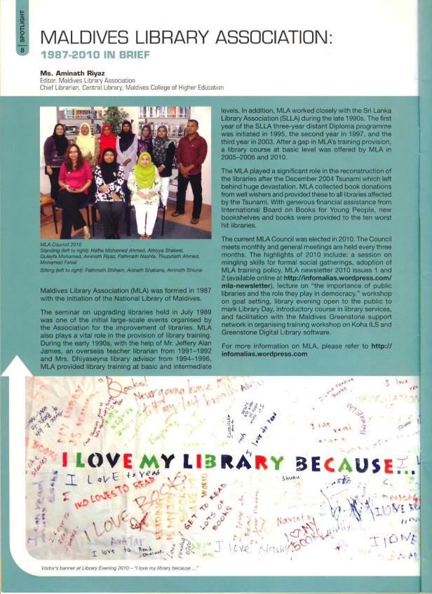 Interesting reads, NEWS MLA in spotlight!!! Date: February 20, 2011Author: infomalias 0 Comments IFLA Asia and Oceania Section Newsletter IFLA ISSUE 22:2 DECEMBER 2010 – click on the image below to follow to pdf version of the newsletter. pls see page 8, page 24 and page 25 for MLA news Representation of MLA at REFSALA meeting Share this: Click to share on Facebook (Opens in new window) Facebook Click to share on X (Opens in new window) X Like Loading... Related