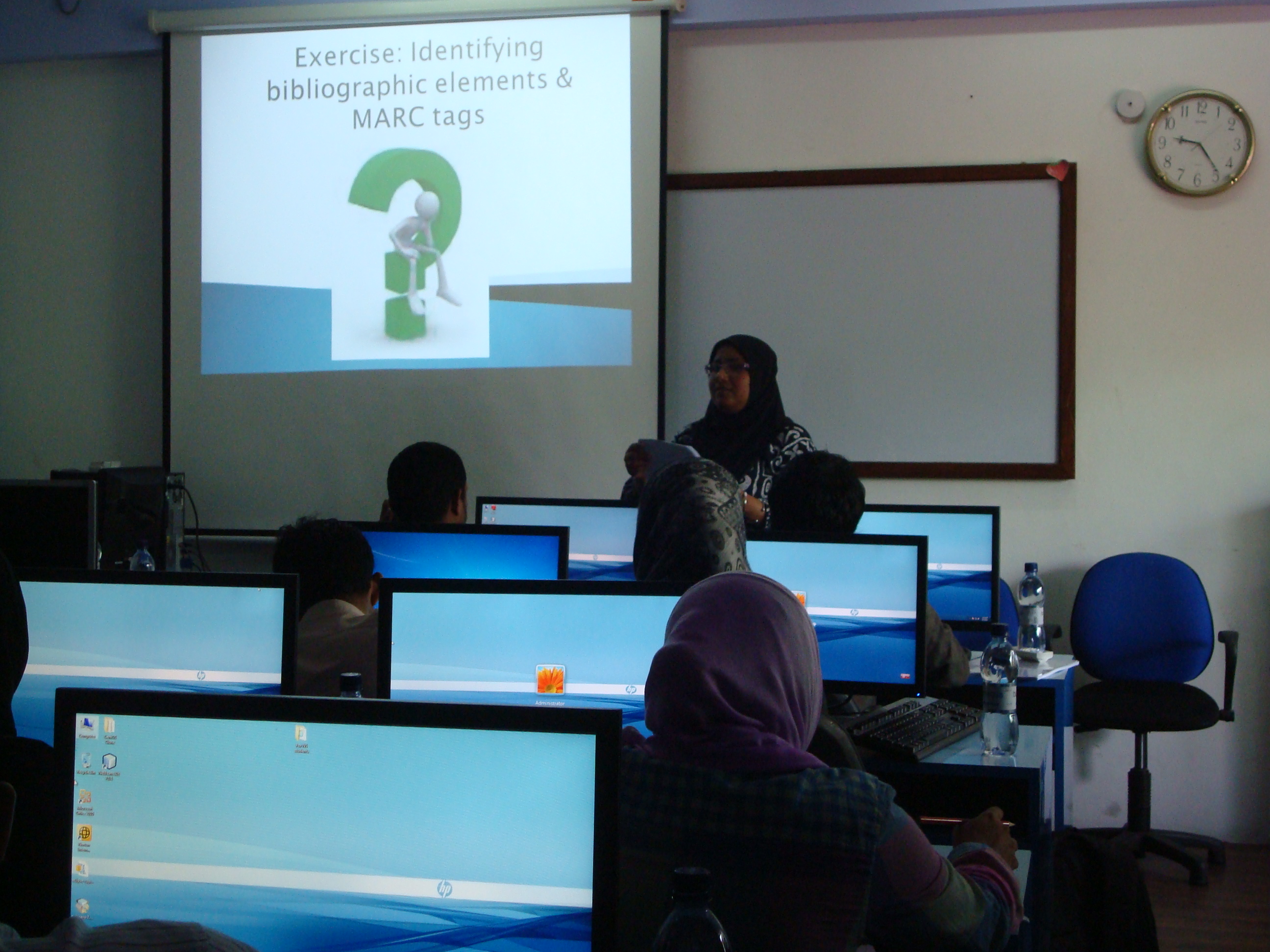 The training was conducted by Mr Nitesh Rijal (software engineer) from Nepzilla solutions, Nepal; assisted by Fathimath Nashfa and Ahmed Rasheed. A session to introduce the concepts of library cataloguing and MARC was delivered by Athiyya Shakeel.