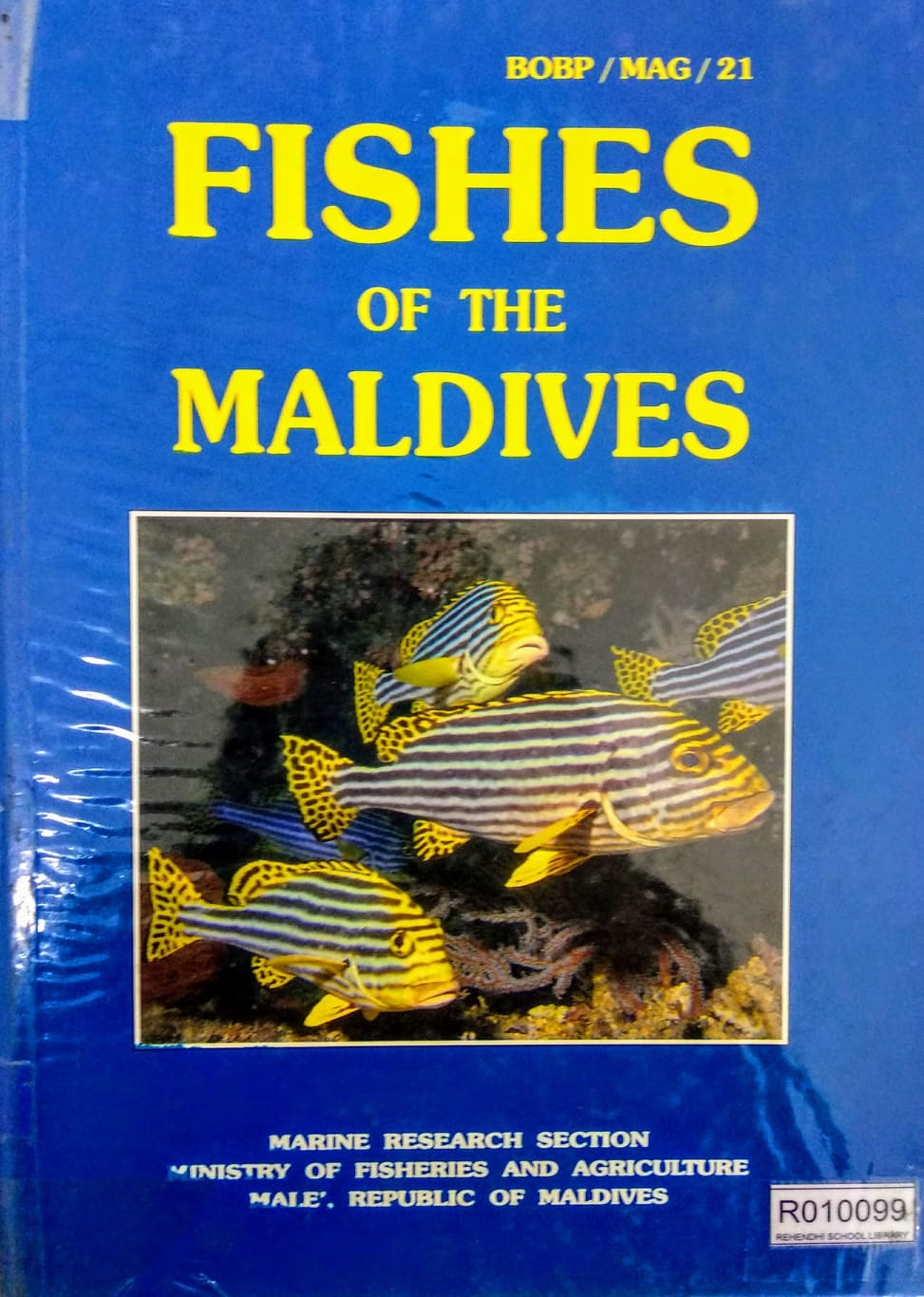 Published by the Ministry of Fisheries and Agriculture in 1997 ‘Fishes of the Maldives’ is filled with all the information about different types of fishes. Starting from the “Tawny nurse shark” all the way to the “silver stripe pufferfish”. It contains the local Dhivehi name, the English name, size and family of each fish along with a description. The book also has a map of Maldives with a profile of atolls. It is a truly fascinating book suitable for all ages. (Rehendhi School Library)