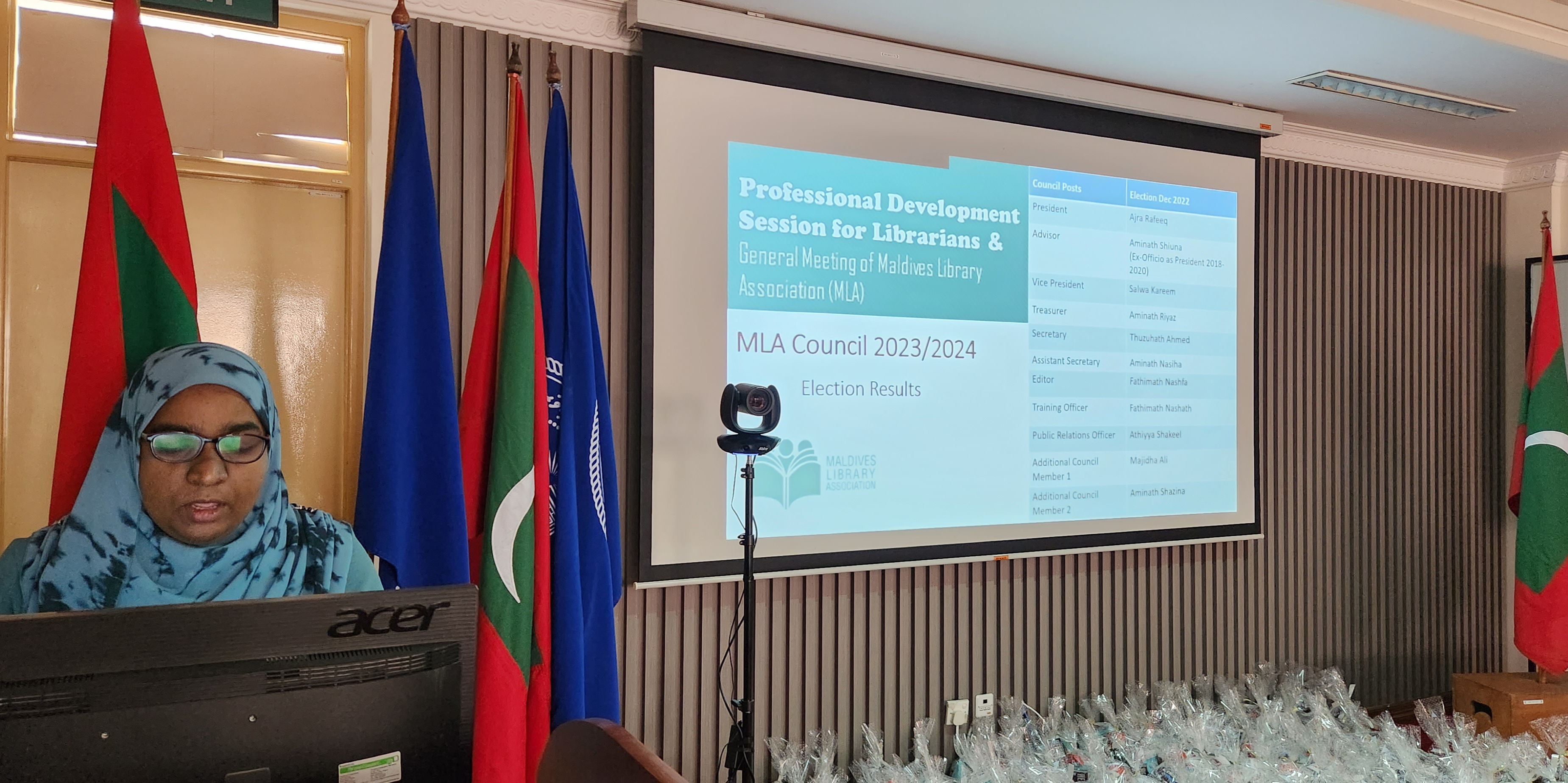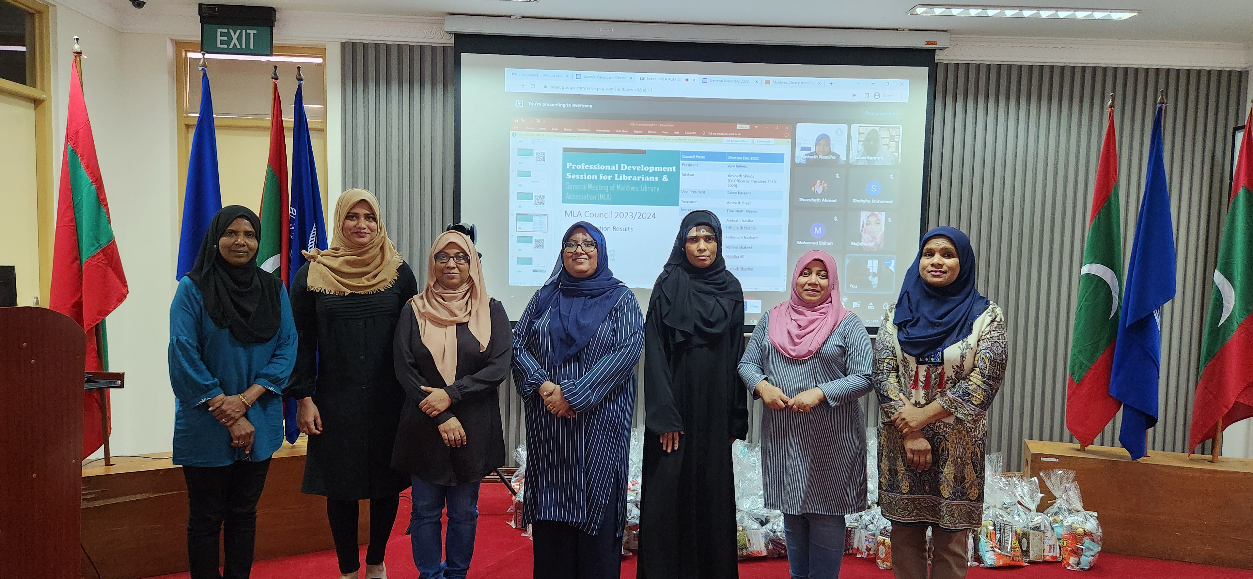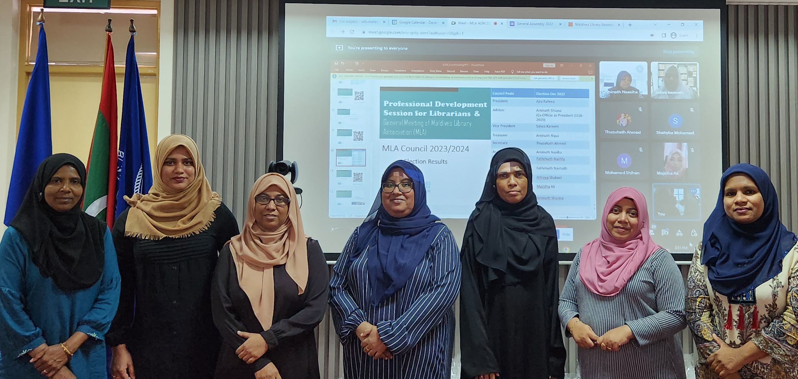 The Maldives Library Association annual general assembly was held on 10th December 2022, Saturday, from 14.00 to 16.00. The Phygital event was hosted at the Seminar Room of Maldives National University in collaboration with Faculty of Arts, with 15 members participating physically and 30+ participants joining the meeting online via Google Meet.