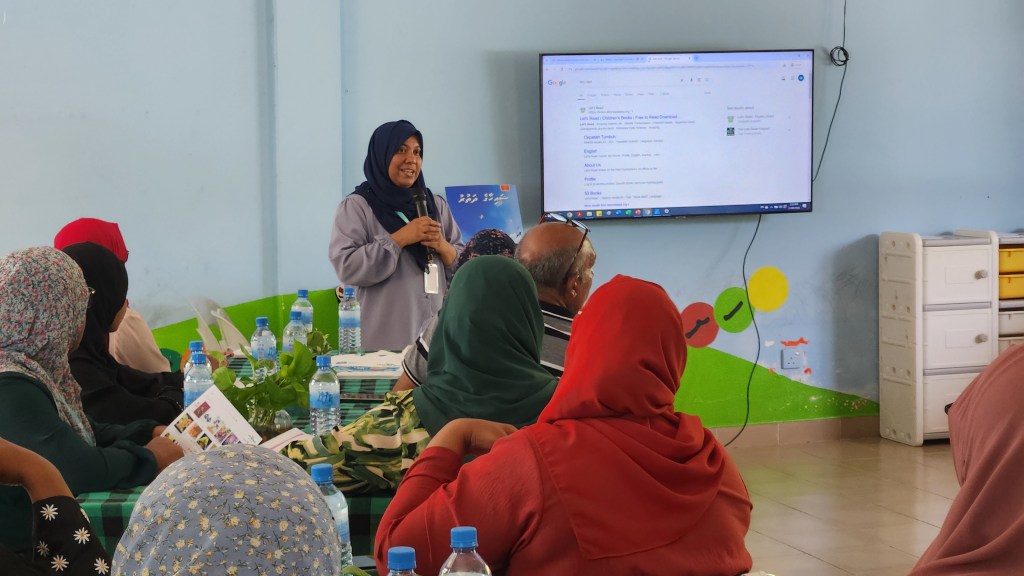 Kanniya Pieris, the Program Manager for Let’s Read Books for Asia, participated online and discussed the initiative’s future potential for libraries across the country and impact on children’s literacy. Participants were introduced to the program, platform navigation, and translation opportunities by former Administrator of Let’s Read platform in the Maldives, Fathimath Nashfa. Azeeza Afeef and Aaidha Hammadh, lecturers from the Department of Dhivehi Language and Culture and the Department of Foreign languages, at MNU, provided insights on maintaining proper language structure and cultural adaptation when translating from English to Dhivehi.