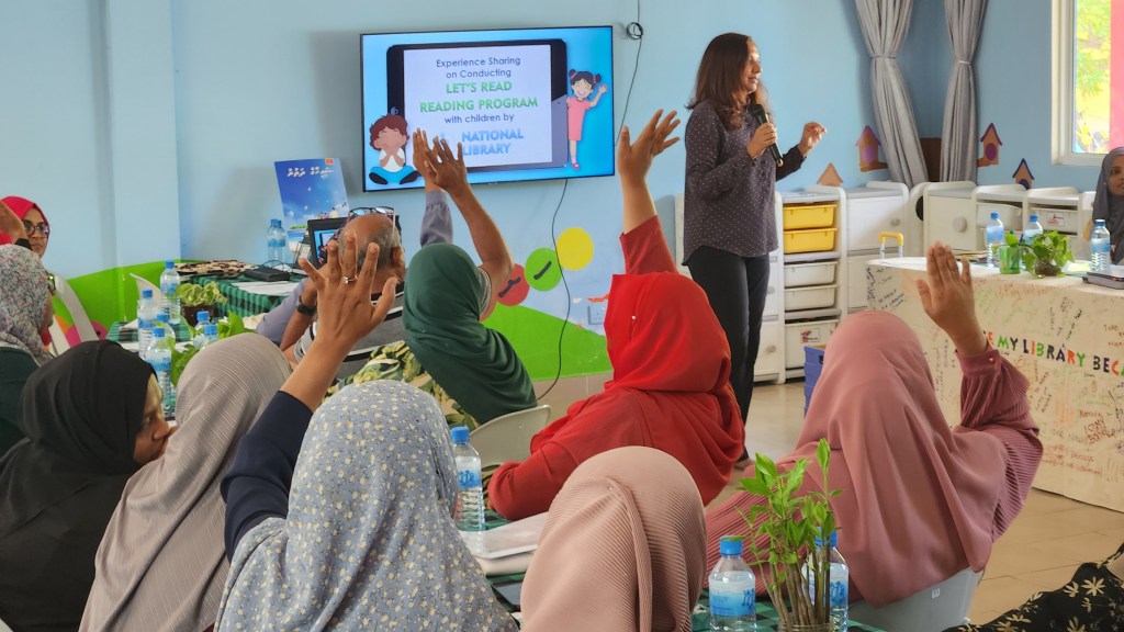 The workshop also explored strategies for effectively engaging young readers, particularly through read-aloud sessions. Aishath Yooliya Haleem, a passionate reader from the Reading Room, delivered an engaging workshop for librarians and primary school teachers on how to captivate young readers through storytelling. She even read a story aloud for the participants, making the session both fun and enjoyable.