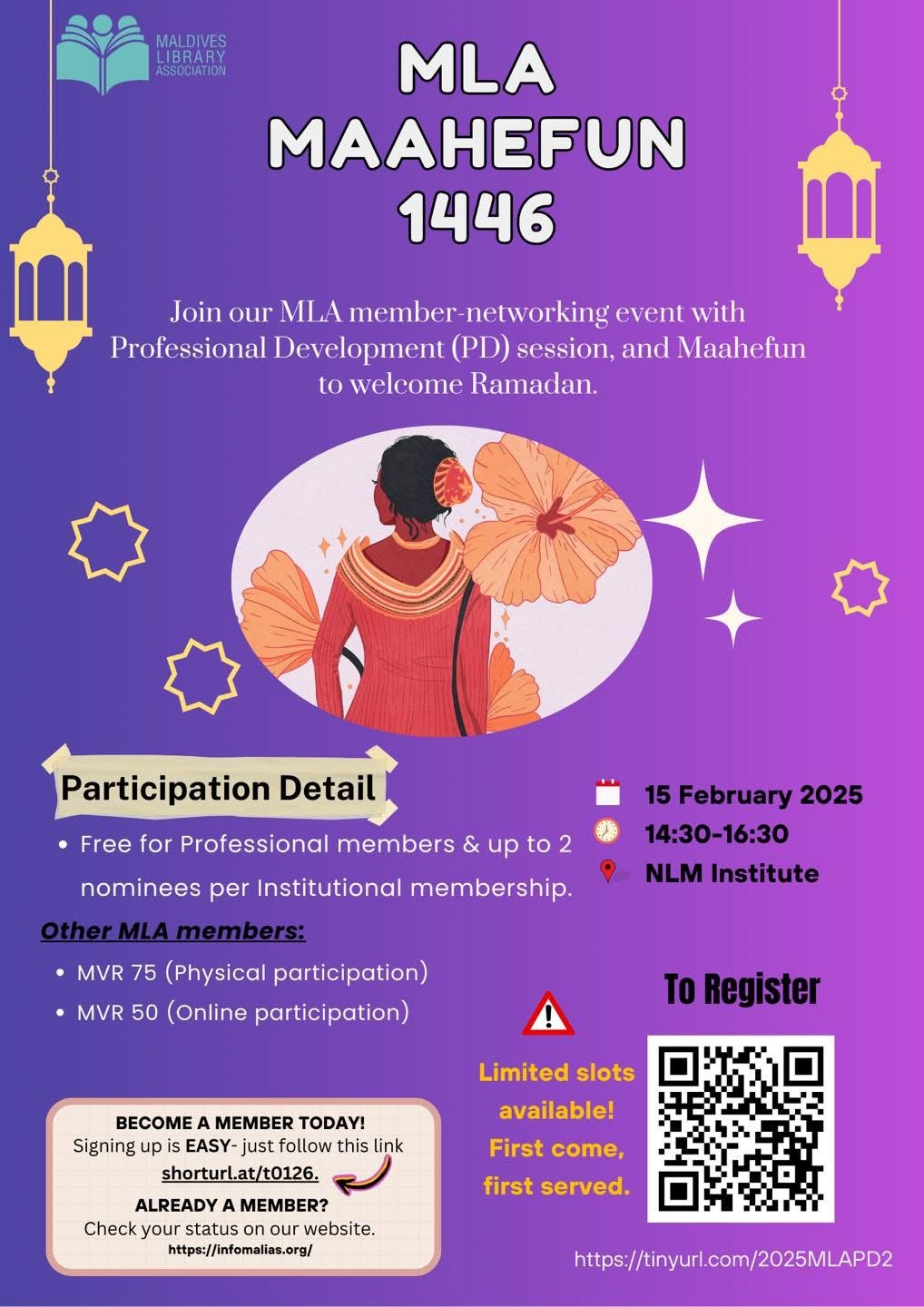 participation in this event is free for MLA professional members, and participation for up to two nominees from your institutional members is also free. For other members, a nominal fee of MVR 75 will be charged for physical attendance, and MVR 50 for online participation. Don’t miss this chance to connect with fellow professionals, share insights, and grow your network within the MLA community. We look forward to seeing you there!