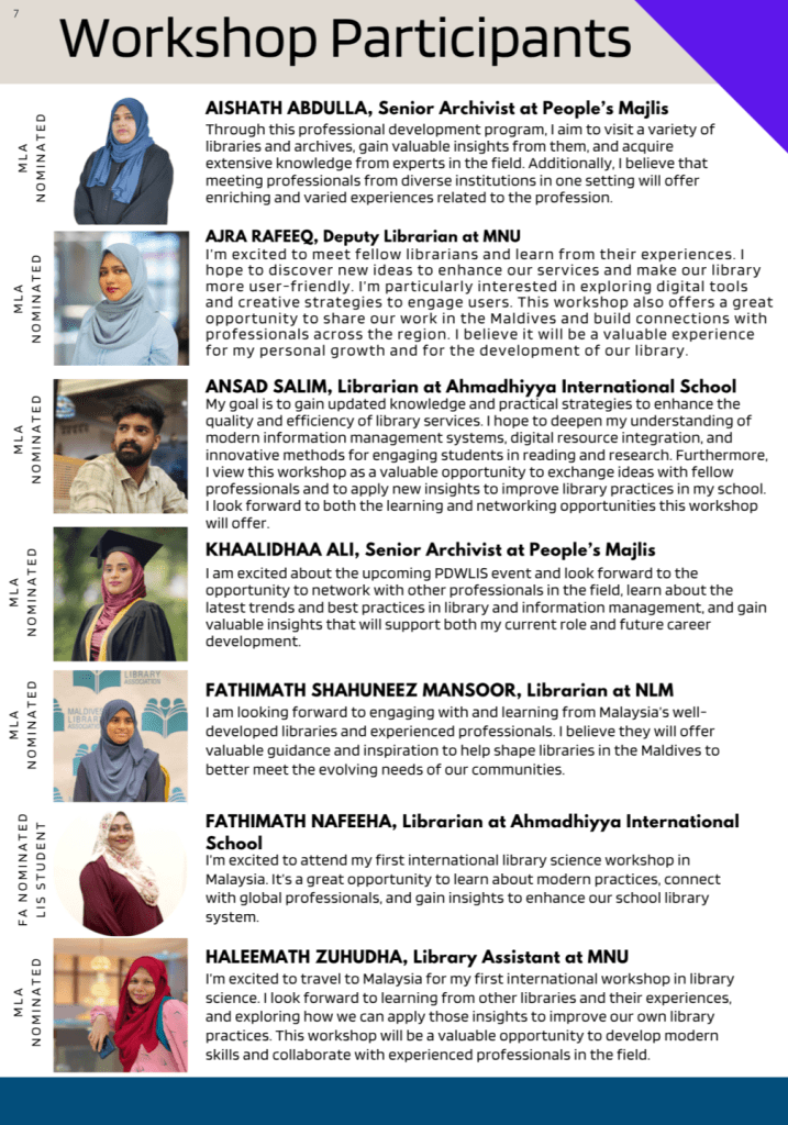 PDWLIS is a student-led initiative that began in 2023, born out of a desire to bridge classroom learning with global best practices in librarianship. Supported by the Maldives Library Association (MLA) and Maldives National University’s Faculty of Arts (MNU-FA), the workshop series has quickly evolved into a highly anticipated annual event.