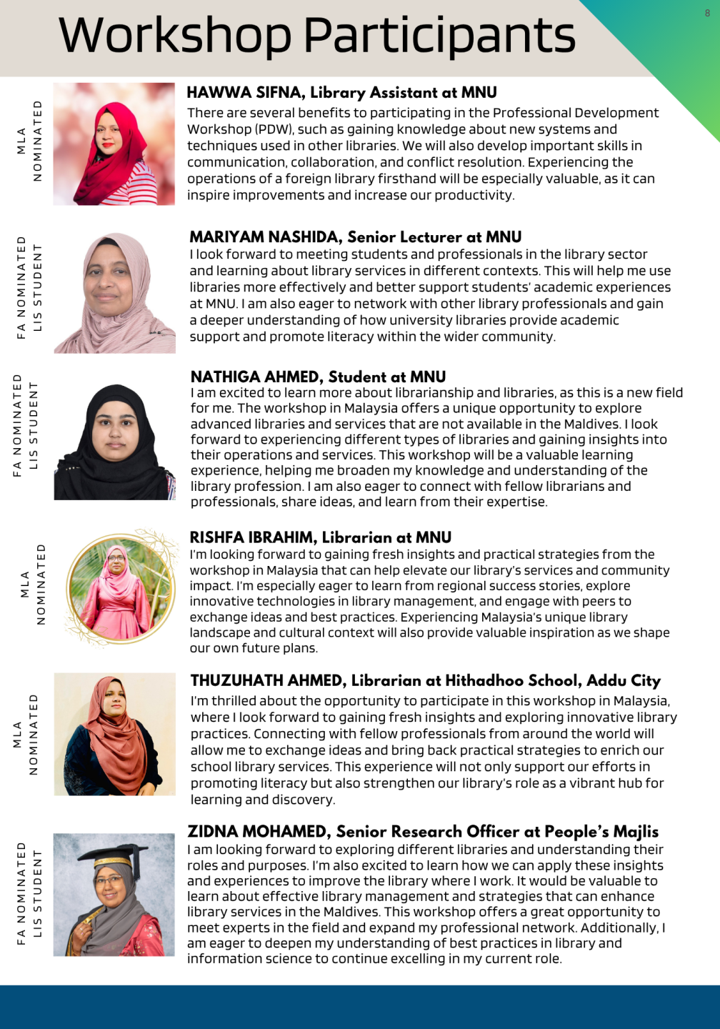 - Sponsorship-supported librarians from the People’s Majlis and MNU